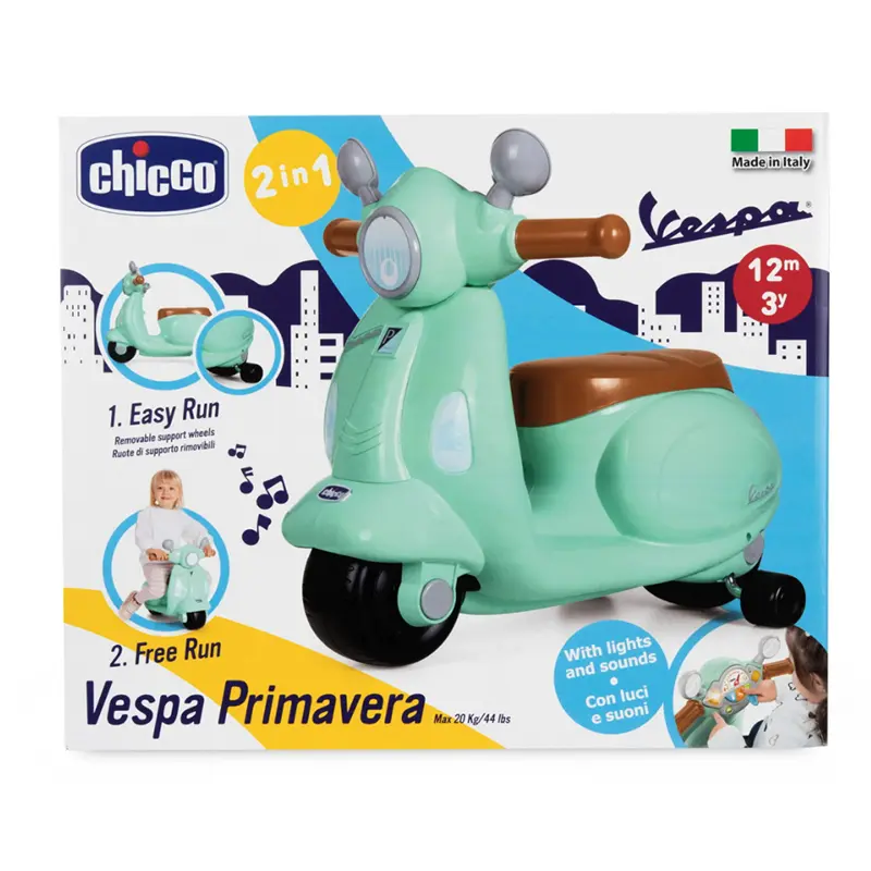 Chicco Kinderwagen einer Vespa Primavera, offiziell lizenziert von Vespa.