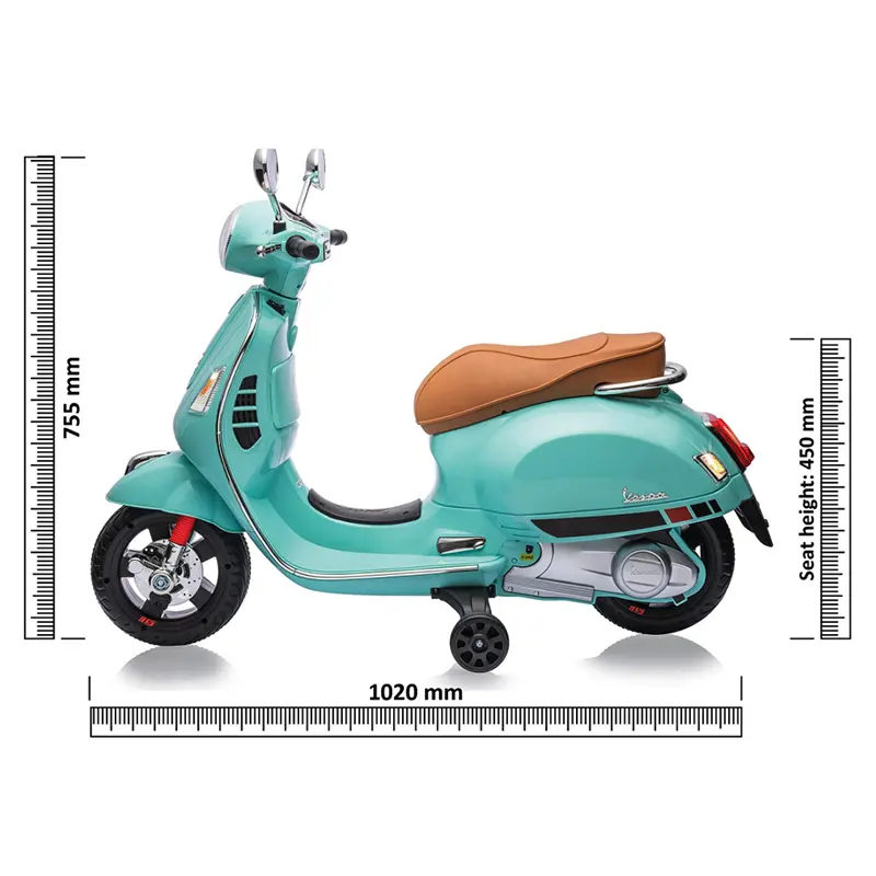 Dieser Kinderroller hat eine offizielle Lizenz von Vespa. Der Kinderroller hat alle europäischen Tests mit Bravour bestanden und ist natürlich CE-gekennzeichnet. Es handelt sich also um ein Qualitätsprodukt.