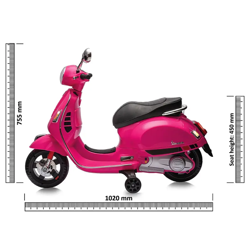 Dieser Kinderroller hat eine offizielle Lizenz von Vespa. Der Kinderroller hat alle europäischen Tests mit Bravour bestanden und ist natürlich CE-gekennzeichnet. Es handelt sich also um ein Qualitätsprodukt.